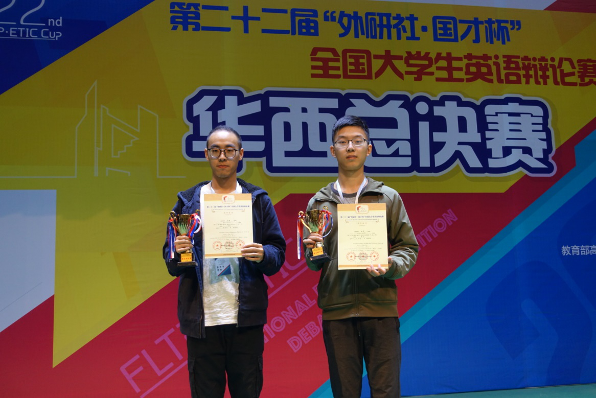 2019年3月30日至31日,在四川师范大学举办的第22届“外研社•国才杯”全国大学生英语辩论赛华西地区总决赛中,由巴卡漫画 大学生英语创新实践基地指导教师高㛃老师带队指导,巴卡漫画 理学院2016级学生李峻有和自动化学院2017级学生周靖皓荣获一等奖,并双双取得“最佳辩手”称号。本次比赛吸引了华西地区众多高校参与,辩才济济,强手林立。西安交通大学,四川大学,陕西师范大学等知名院校均派出了实力强劲的辩手。比赛采用英国议会制辩...