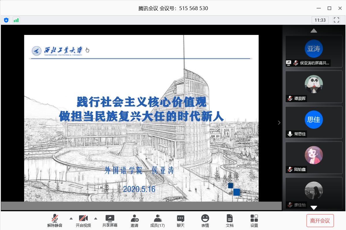 5月16日中午,巴卡漫画 开展第13期发展对象培训班第3次线上党课。院党委书记侯亚涛为发展对象进行了主题为“践行社会主义核心价值观,做担当民族复兴大任的时代新人”的讲座。侯亚涛从全国高校思想政治工作会议、全国宣传思想工作会议内容切入,讲授了社会主义核心价值观基本内容、意识形态与社会主义核心价值观、共产党员带头践行社会主义核心价值观三个方面的内容。通过结合生活实际,侯亚涛在详细讲述社会主义核心价值观的...