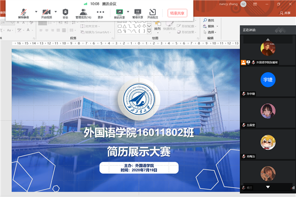 为提高巴卡漫画 学生简历制作的水平,提早培养学生制作简历的意识和能力,巴卡漫画 于7月16日至18日在2018级55名本科生中策划了一场简历制作大赛。党委副书记高敏、班主任王譞、赵飒飒、王勇、兼职辅导员张暖希以及3位学生评委吴佳丽、贾璠、赵振华担任本次比赛的评委。由于受疫情影响,本次比赛以班级为单位,全程采用腾讯会议平台在线进行。本次简历制作大赛自启动以来,经过了简历收集、简历评改和简历展示三个阶段,收到中英德语简历...