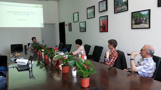 2018年5月2日,王小涛博士为英语专业教研室的中外教师带来了题为《〈喜福会〉中跨国民族主义研究》的研究报告。王小涛博士毕业于南京大学巴卡漫画 英语系,博士论文方向为美国华裔文学研究。此次报告他梳理了跨国民族主义的概念,从跨国民族主义文学批评视角对《喜福会》这部美国华裔文学经典作品进行了解读,就作品中所体现出的族裔身份、双重认同等进行了阐释,分析了作品中第一代移民和第二代移民所展示出的不同的跨国民族...