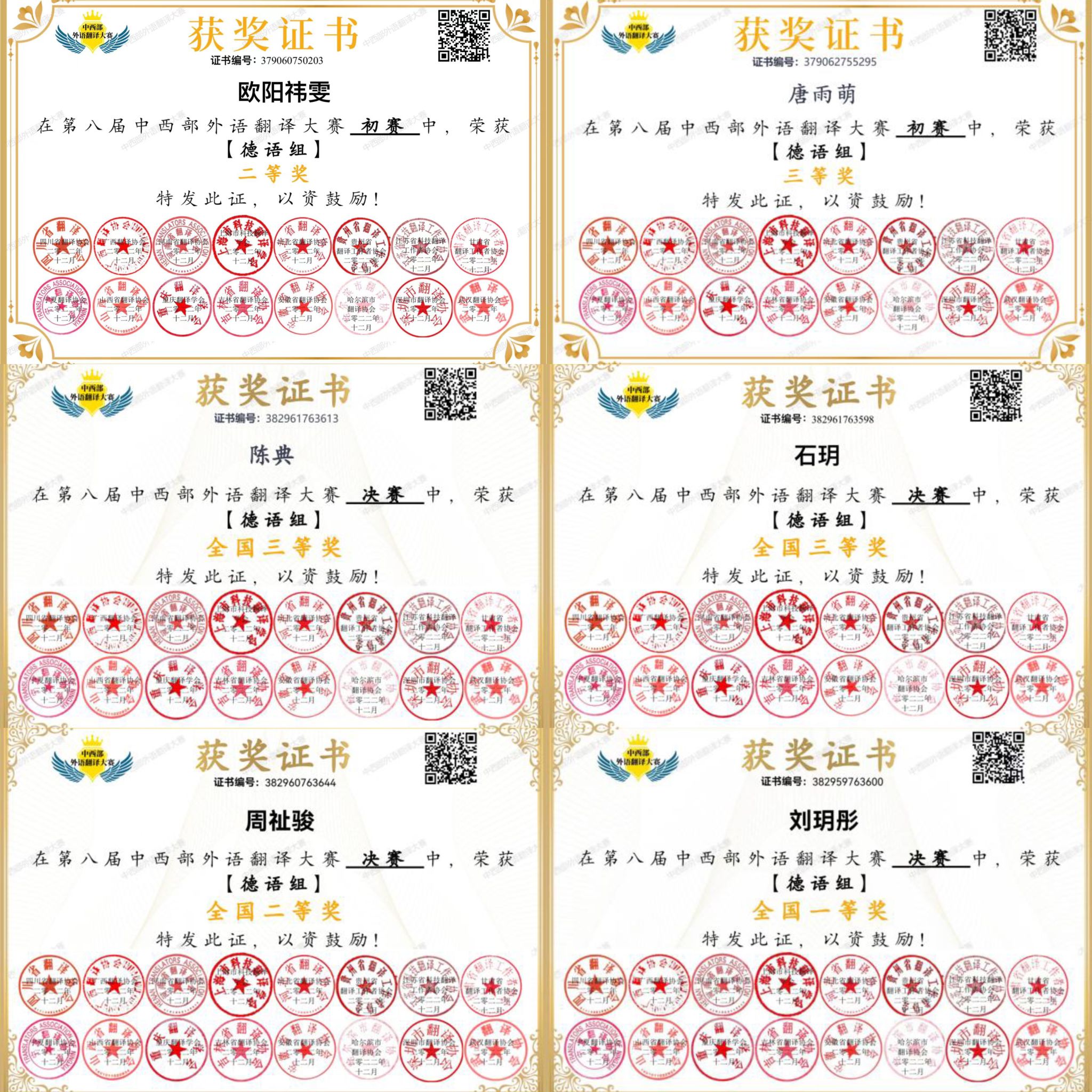 2022年11月12日至12月4日,国内16省的翻译协会联合举办了“第八届中西部外语翻译大赛”。本次大赛覆盖英、法、德、日、俄、西等六个语种,分八组进行,共计来自全国31个省市区654所高校的15030名选手参赛,其中来自22个省市区83所高校的546名选手参加德语组比赛。巴卡漫画 德语专业2020级共计11名选手由邓涛老师指导参赛。经过初赛角逐,巴卡漫画 选手脱颖而出,欧阳祎雯同学获得初赛二等奖,唐雨萌同学获得初赛三等奖,另有8名选手成功晋...