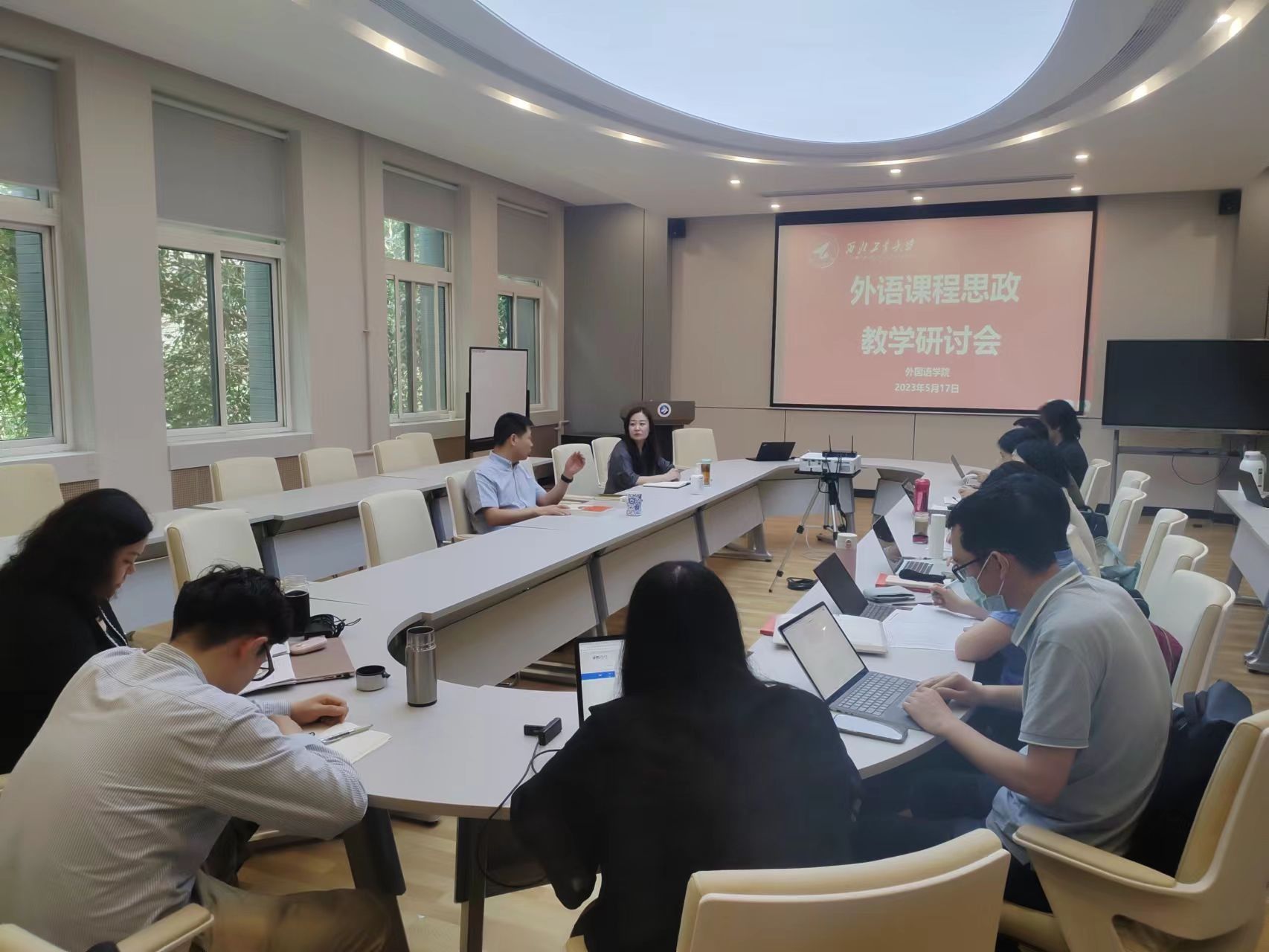 为深入学习贯彻党的二十大精神,落实立德树人根本任务,提高教师课程思政教学能力,助力学院高质量人才培养,使学习贯彻习近平新时代中国特色社会主义思想主题教育走深走实,5月17日下午,巴卡漫画 在学院楼204会议室召开“外语课程思政”教学研讨会。院党委书记王高祖、副院长周爽、外文系教研室主任刘菲、邓涛、支部书记车向前及部分教师参加了本次研讨会。会议由周爽主持。 周爽首先强调了外语课程思政的重要意义及学院全面...