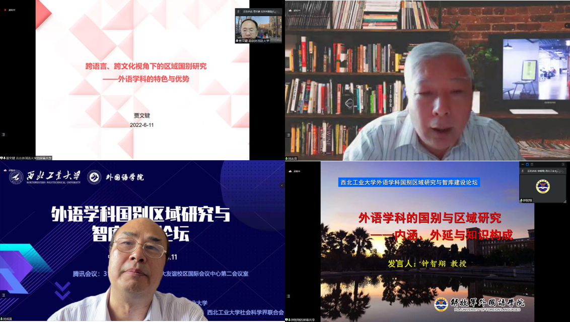 国务院外语学科评议组成员、信息工程大学钟智翔教授在对比传统国际问题研究和外语学科的国别区域研究基础上,论证了国别区域研究的定义、方法及发展前景。他提出,国别区域研究聚焦中国以外区域问题,研究对象国的相关问题,致力于创建立体化国别知识体系。其重点在于揭示西方中心主义的盲区,向世界阐发中国立场。