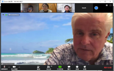 Tim寒假期间在美国度假,收到网上教学的通知后,在疫情仍未解除的情况下,义无反顾的从美国夏威夷飞回到中国,“与中国同在”是他对第二故乡的深情告白。由于要开展在线教学,Tim不懂汉语,现有的各大教学平台都是汉语版本而且操作方法复杂。经再三考虑之后,决定选择自己得心应手的微信平台。 Tim付出了比平常更多的努力,自己动手录制上课使用的各类视频短片,反复修订更新教学课件 ,灵活自如的运用微信平台的语音、视频等功能保障网络教学有序开展,教学效果受到同学们的一致好评。
