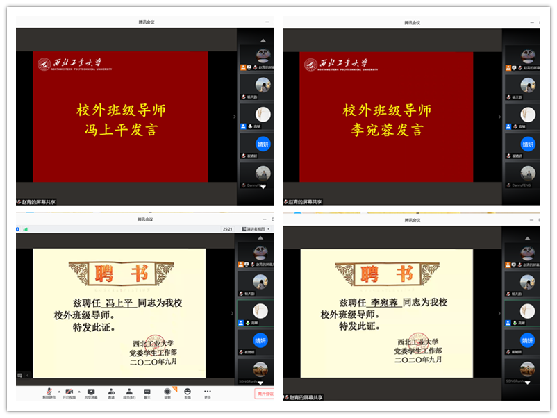 冯上平、李宛蓉依次发言,分享了自身的求学和创业经历,也期待后期能够与同学们有更多、更深的交流,为大家的成长成才保驾护航。高敏在云端向两位班级导师颁发聘书。冯上平、李宛蓉将分别对接16011701、16011702班。