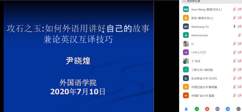 院长尹晓煌教授为同学们做了一场题为“攻玉之石:如何用外语讲好中国故事”精彩的讲座。重点介绍在全球化时代和国际化视野下,如何学习外语,运用他人的语言讲好中国故事,推动中国文化走向世界,为构建人类命运共同体作出应有的贡献,并结合自身在海外多年的学习、工作、生活经历为夏令营的学子们展现了外语人在世界舞台应有的风采。讲座结束后尹晓煌与同学们进行了交流。
