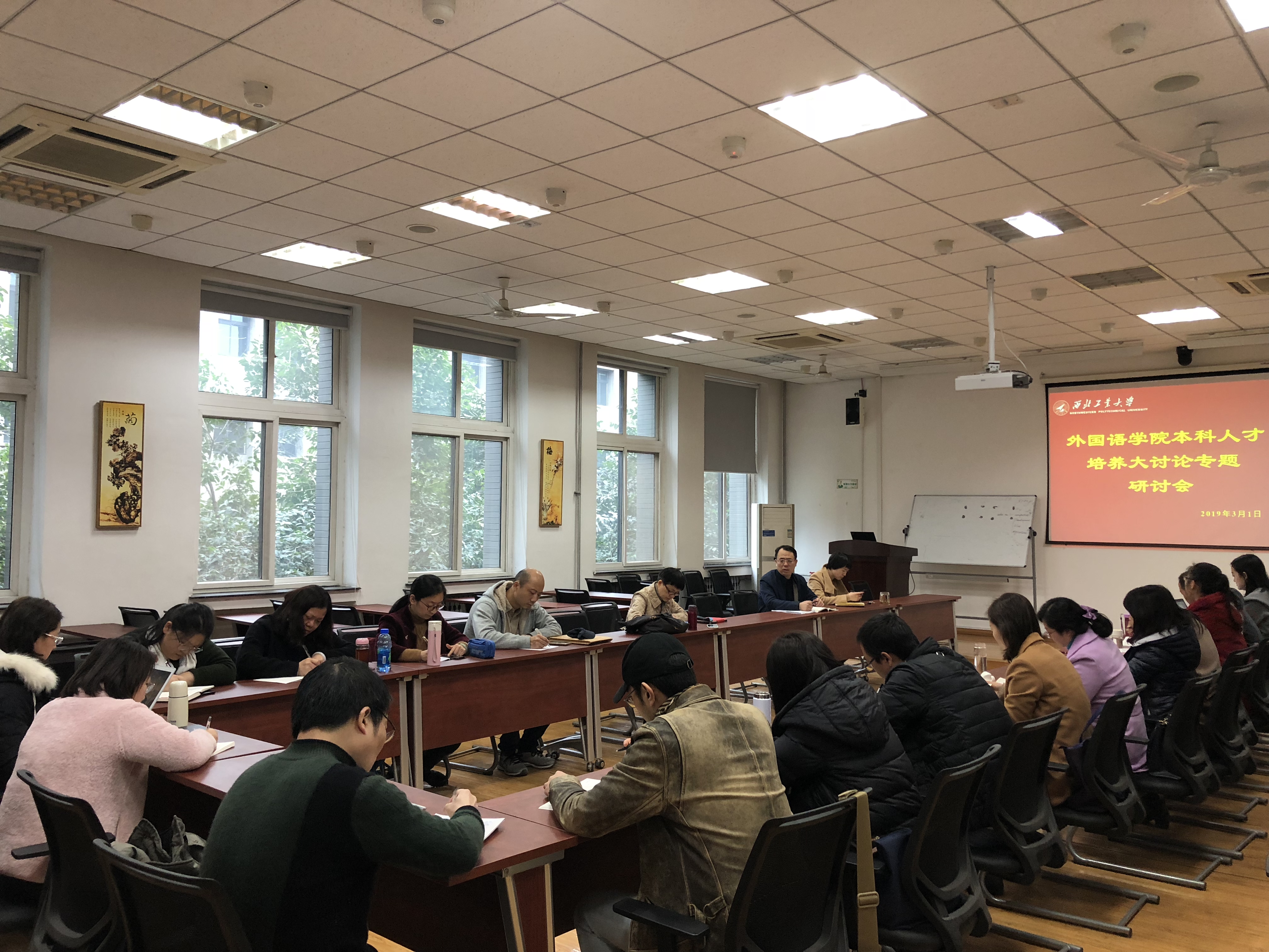 在长安校区外国语学院楼204会议室举行寒假干部会精神学习讨论暨人才培养大讨论第二专题研讨。学院常务副院长、副书记张文涛、副院长张奕、副书记高敏、学院各系部主任、教研室主任、支部书记、辅导员、班主任以及教学秘书等参加了会议。会议由学院常务副院长、副书记张文涛主持。