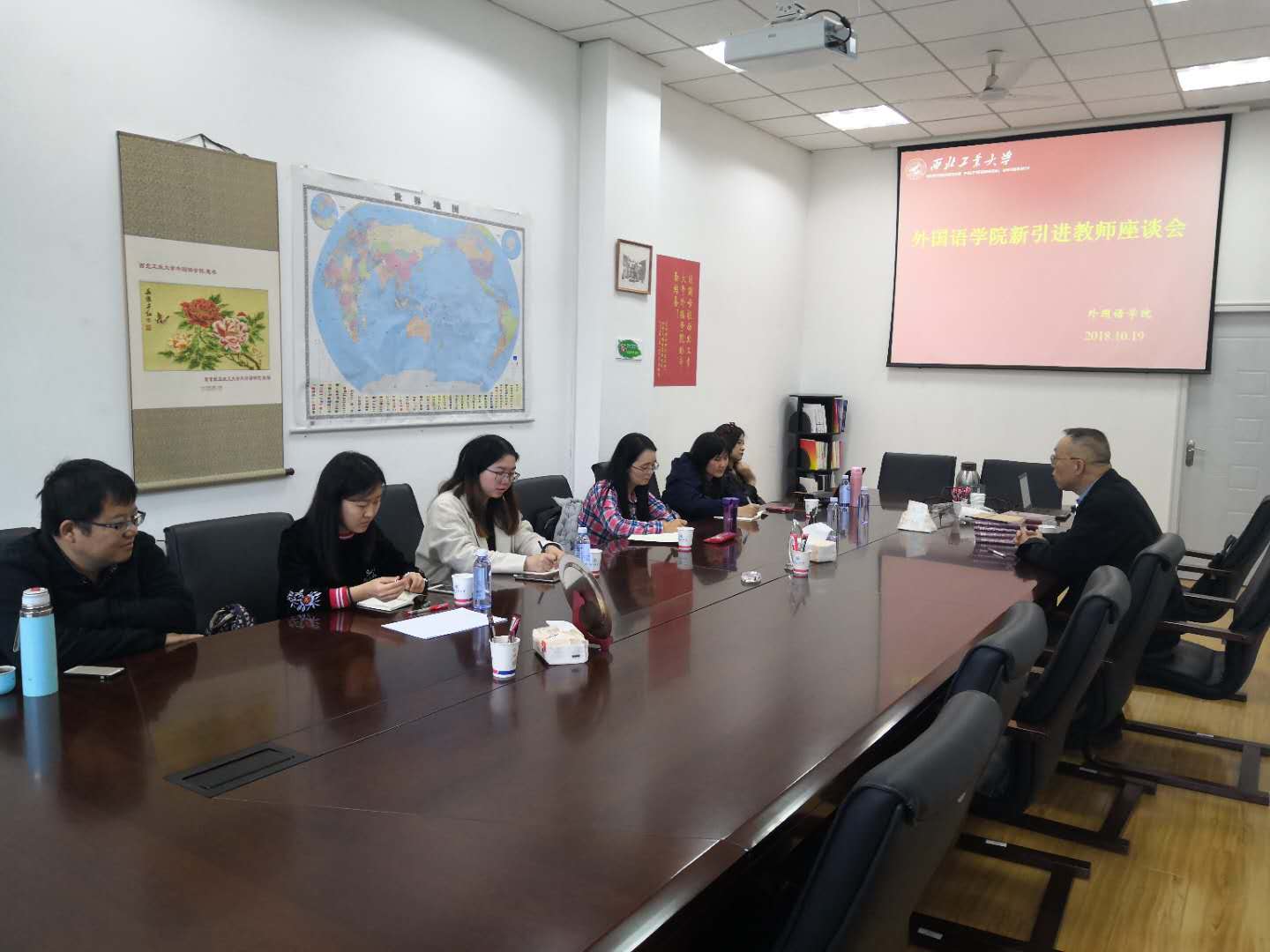 召开新入职教师座谈会,学院近两年新入职的部分教师王雪莲、田少颖、商南、李倩瑗、赵飒飒、黄西萌、孙影等参加了会议,会议由尹晓煌院长主持。
