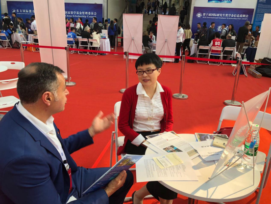 张奕副院长与澳大利亚麦考瑞大学在友谊校区翱翔体育馆第十届国际研究生奖学金信息说明会上与研究生院副院长Ren Yi及国际合作处中方事务部主任Liu Xue进行了座谈。同时与外方具体接收博士生的两位有名的语言学教授就学生接受条件及课程准备等事宜进行了交流。双方就研究生联合培养进行了重点交流,初步达成了合作意向。