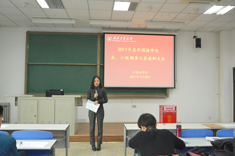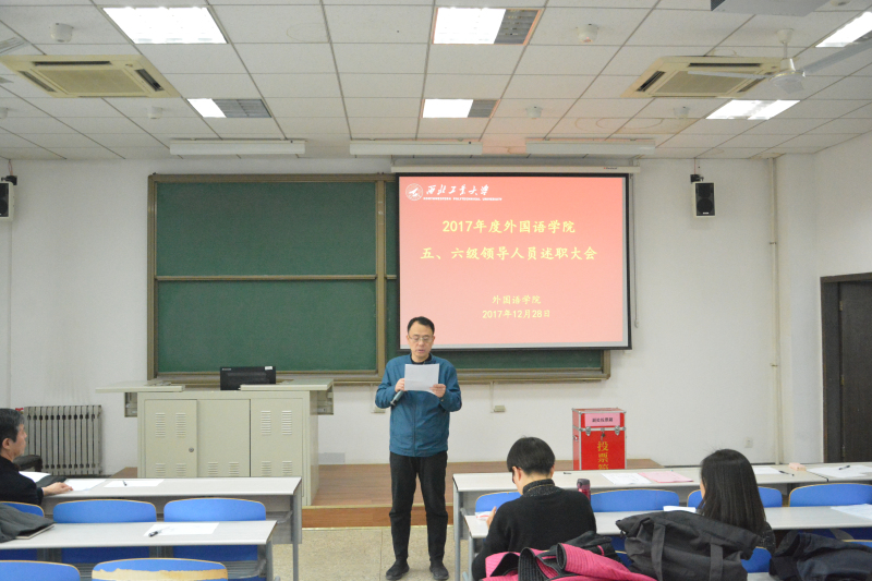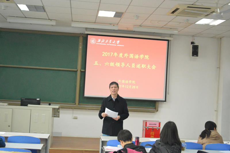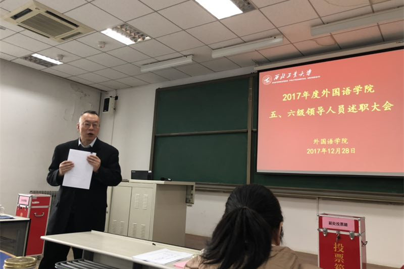 院长尹晓煌首先对学院行政工作进行了总结,他回顾了一年来学院在各方面取得的成绩和进步,特别是在全体教职员工的共同努力下,学院在人才引进、学术建设、学科发展、国际交流、外语教学、影响力提升等方面取得较大突破。新的一年学院将加快内涵式发展,全面提升办学水平,不忘初心,砥砺前进,为建设特色鲜明的一流学院而努力奋斗。尹院长还就个人工作情况进行了详细汇报。