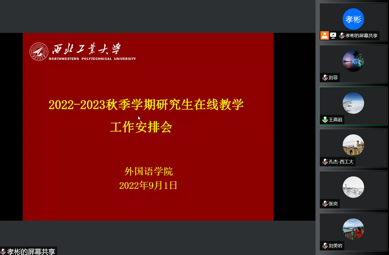 本次会议是学院本学期研究生教学中的重要环节,有助于明晰全体教师的职责,强化教师的责任感和使命感。学院将进一步落实好线上教学工作的安排,确保研究生线上教学顺利开展。学院也坚信通过师生的共同努力,能够保证外语教学环节平稳、有序向前推进。(文:徐娅 崔孝彬,审核:张奕)