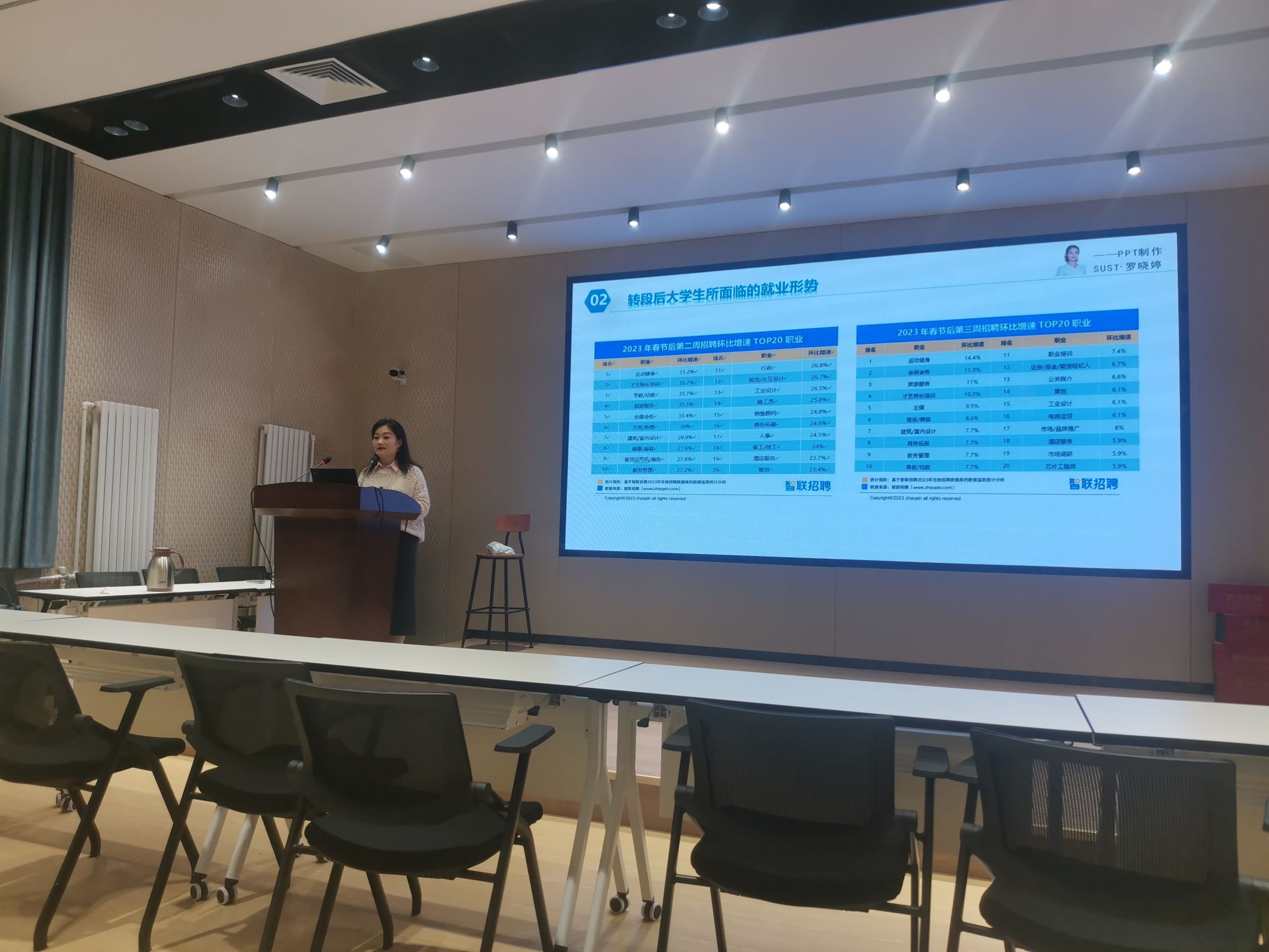 同学讲授“2023就业形势及理性应对”。学生职业发展指导服务中心朱莉老师、巴卡漫画