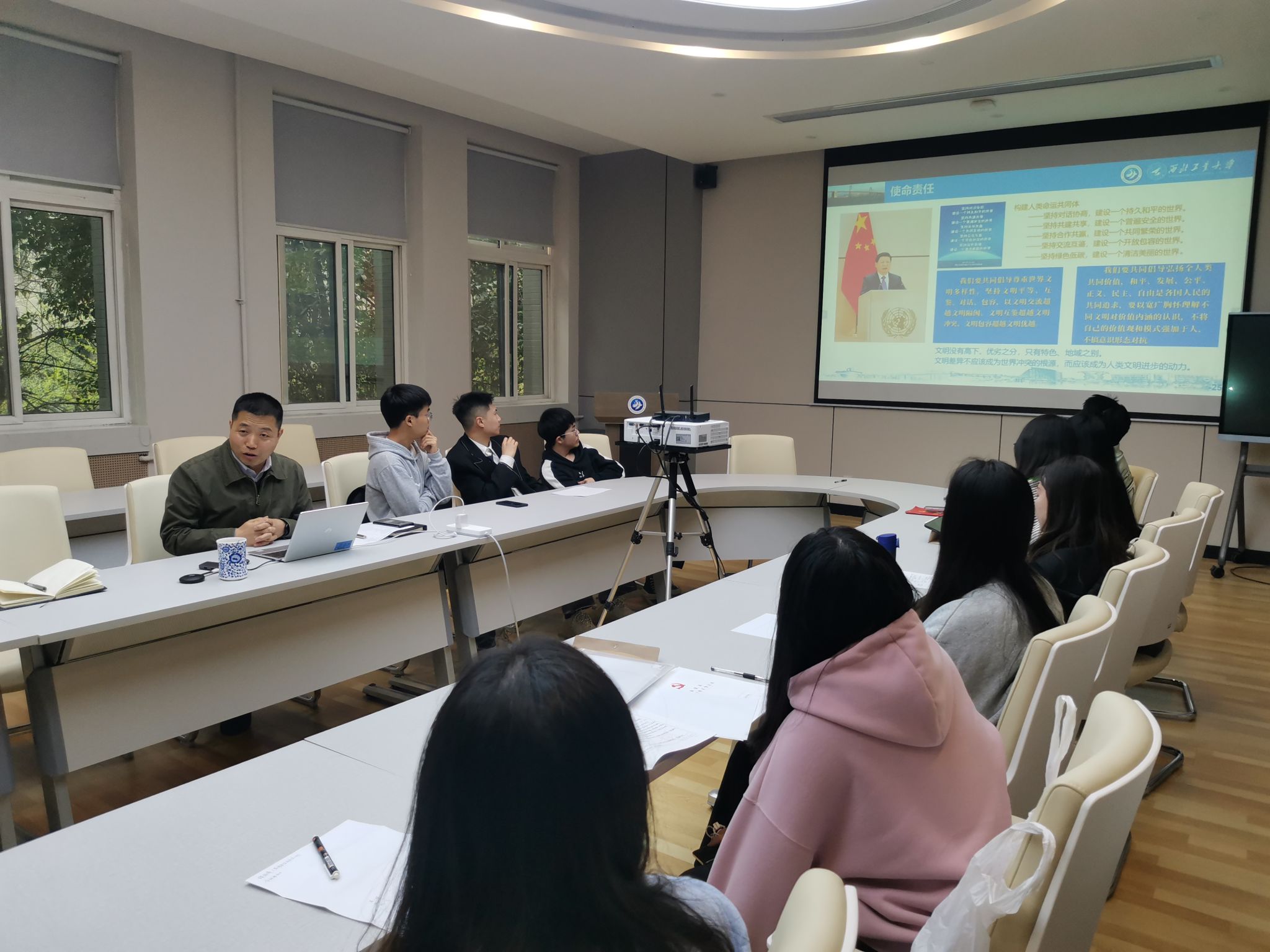 2023届全体硕士毕业生讲授“工大最后一课”。课程中,他充分结合本届硕士毕业生的就业去向、社会发展的需求与导向、外语学子的修炼与前进等为同学们讲授了一堂生动的毕业教育思政课。