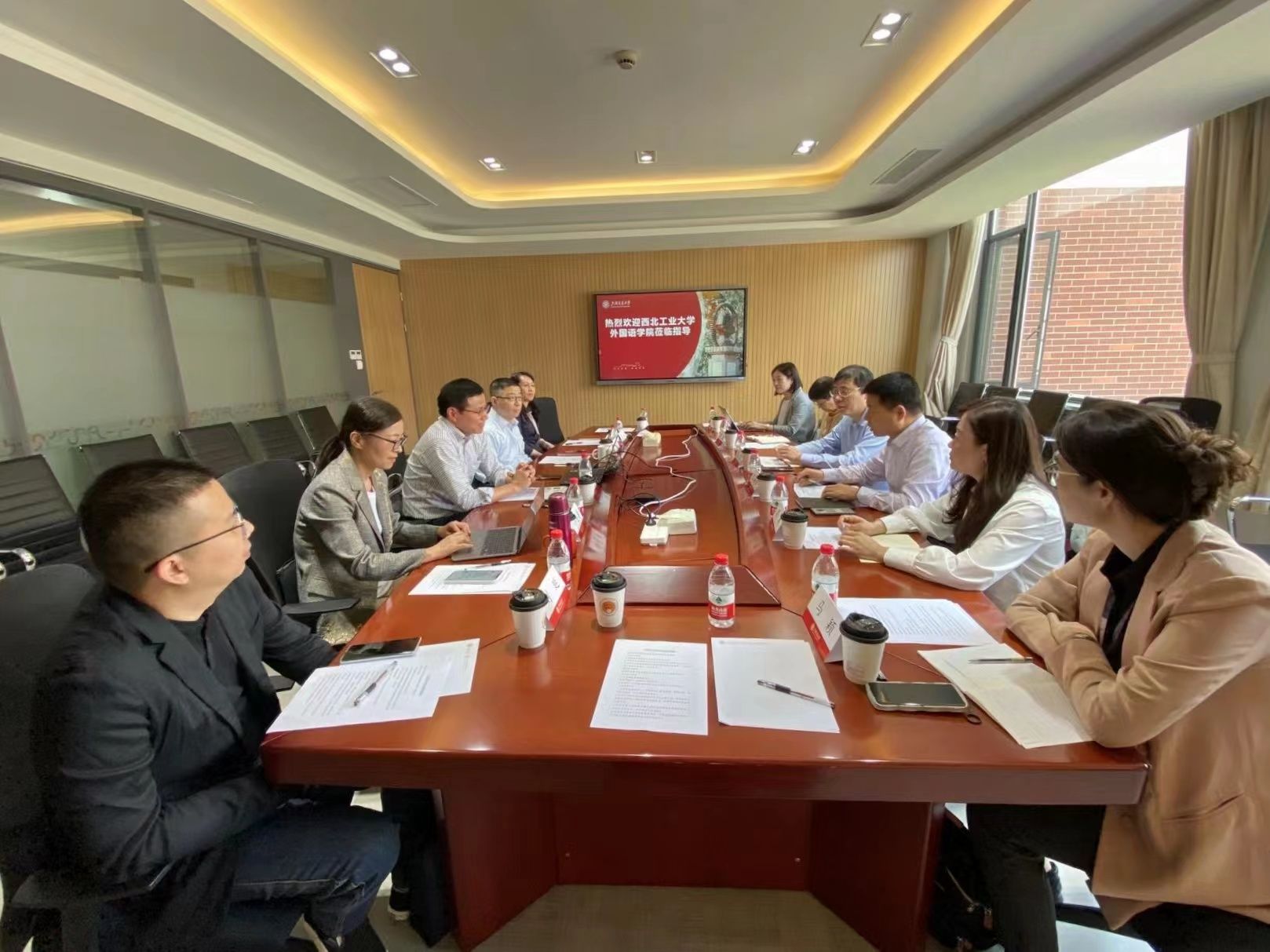 院长李丹弟、党委书记洪玉管、副院长王琳、院长助理谌莉文、院办主任杨艳对调研组一行表示欢迎,并重点介绍了以人才引育为抓手、以“融合”为引领,以“经贸”为特色的外国语言文学博士点申报建设全过程,为学院博士点申报建设提供了新思路。