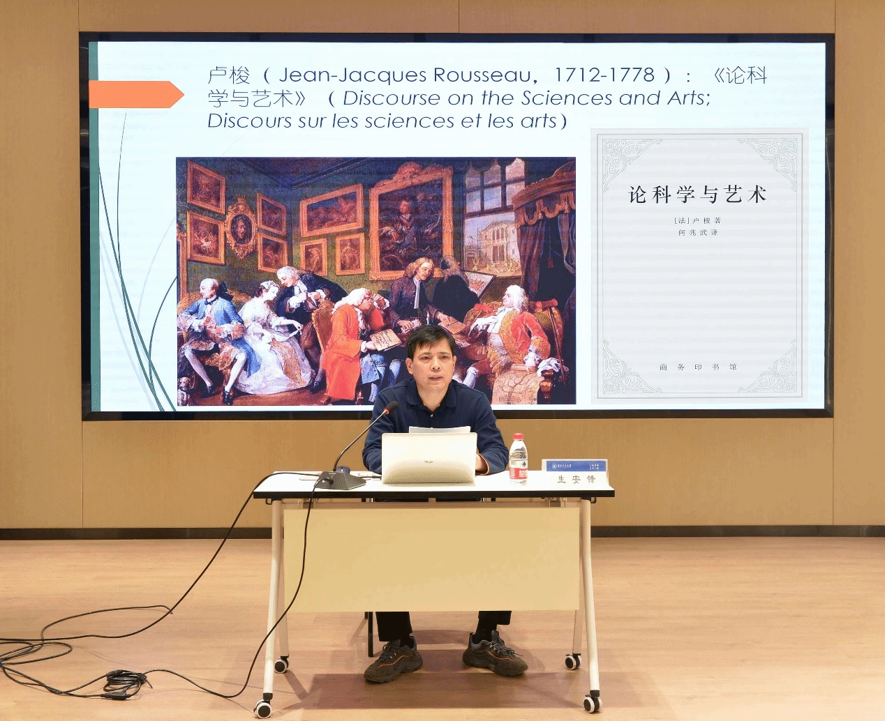 李利敏副教授、对外经贸大学宋成方副教授、上海交通大学邹理副教授从“文化符号学”“认知文体学”“情感文体学”“文化共同体构建”角度对文学的科学化研究与文本细读发表了观点。黄西萌助理教授的“文学文本分析的文化符号学视角:从‘空间’出发”对洛特曼以“空间”概念为核心发展出的适用于文学文本分析的文化符号学理论进行梳理,并用大量文学文本分析实例进行论证,为文学文本分析提供新角度方法论。李利敏副教授在“什么是认知文体学?”中通过厘清认知文体学的发展历程、明确认知文体学定义、认知文体学面临的批评与挑战,归纳了认知文体学研究的基本任务,提出认知文体学发展的新方向。宋成方副教授的“生气还是不生气:这是个问题——《炼金术士》中生气情感事件分析”通过搜集读者反应语料,在情感文体学视域下,依据读者的三种阅读反应类型理论框架,对小说《炼金术士》中的情感内容进行分析,从而揭示生气事件中的价值信息和意识形态蕴含,并初步探讨该小说的主题。邹理副教授在“反体系运动与新世纪美国世界文学思潮中的文化共同体构建”中尝试通过考察美国新世纪世界文学思潮中文化共同体的构建方式与非西方国家的反体系运动之间的勾连来探讨西方文学批评界与社会现实之间的互动机制。分组论坛发言后,主持人与点评嘉宾从专业角度对发言作了启发性点评。两位专家指出,本组分论坛的发言实质是在论坛上午主旨演讲发言的指导下,开展了对文学文本的具体分析,具有相当的延续性。本组四位老师的学科与研究方向各不相同,这种跨学科的相互交叉,相互学习,能够产生丰硕的成果,以服务我国新文科战略需求,推动外语学科高质量发展。主旨报告发言人、清华大学外文系长聘教授生安锋教授莅临并指导了该论坛的发言。