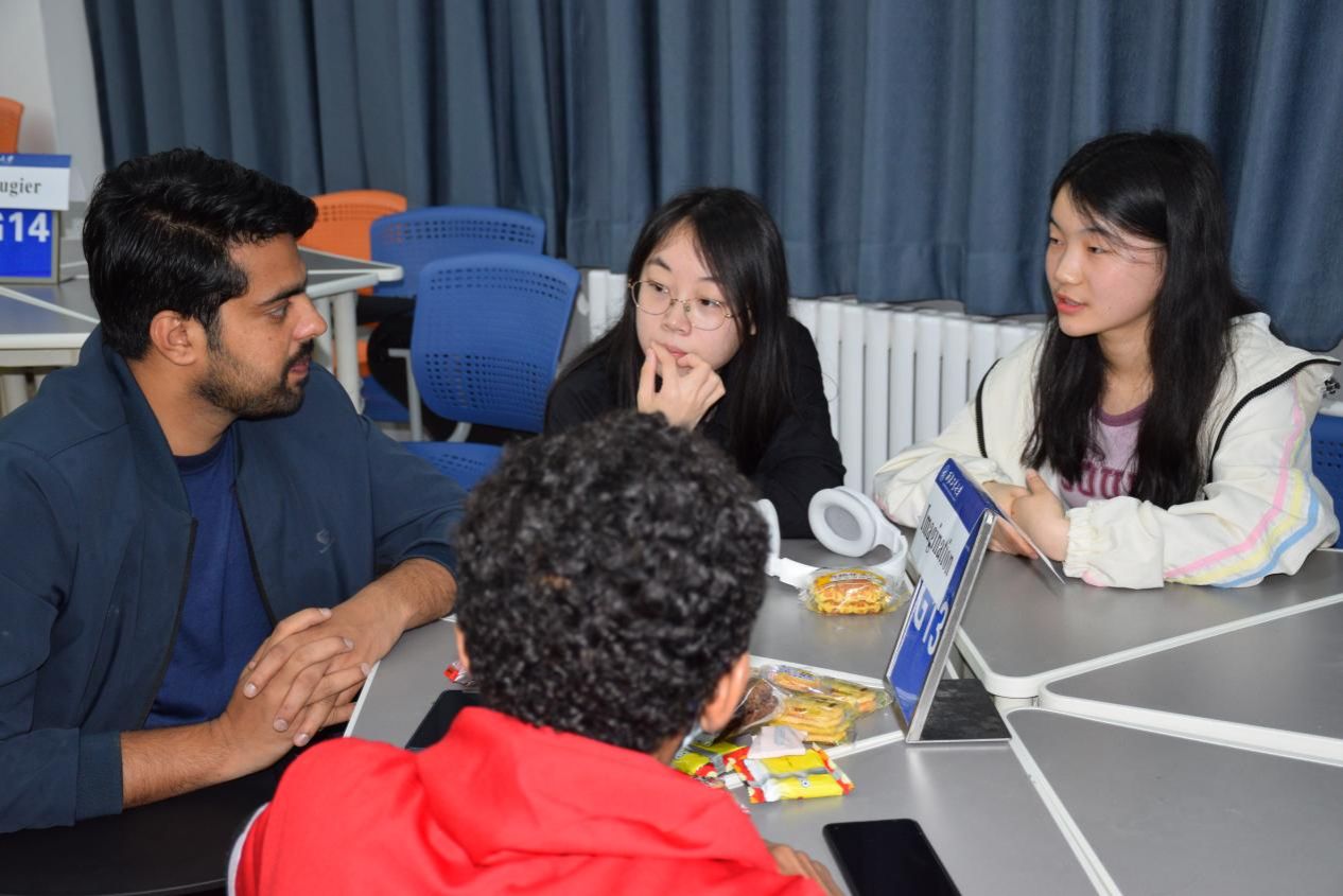 在“free talk”的环节,同学们更为自由和放松。来自不同国家的同学或是分享本国文化历史,或是漫谈生活日常,现场气氛其乐融融,充满了欢声笑语。