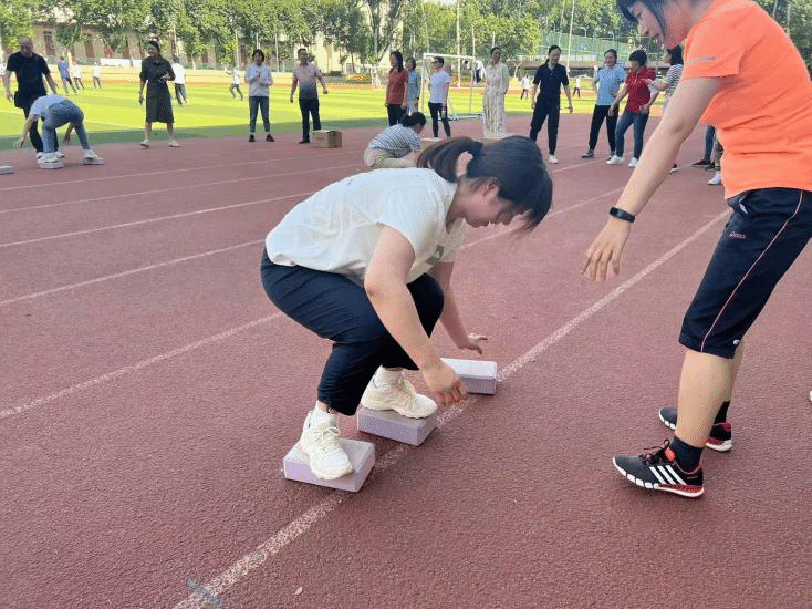 趣味运动会。骄阳当空,晒在操场上每位老师身上,仿佛点燃了大家的运动热情。