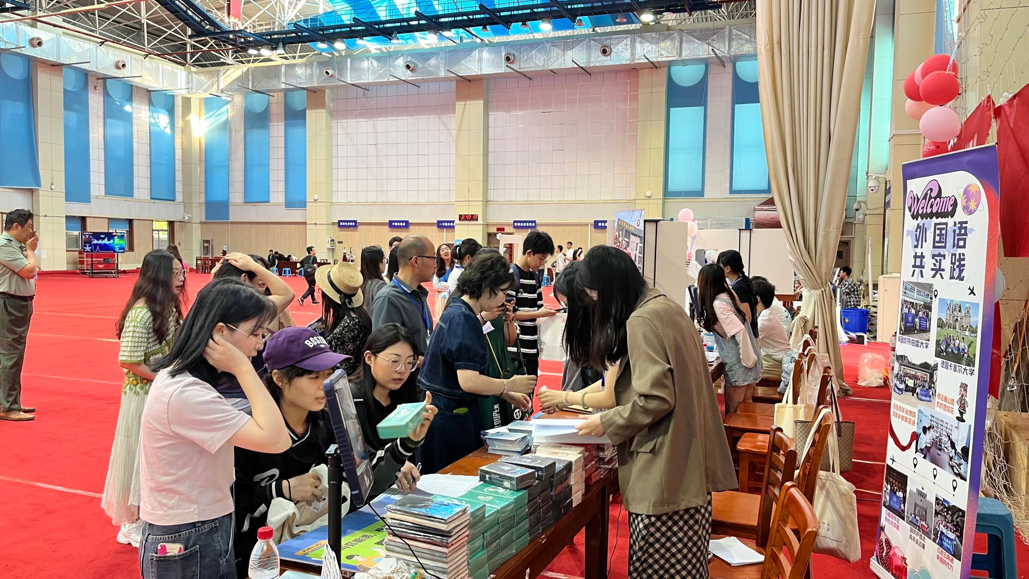 为了顺利完成2023级硕士研究生的迎新工作,学院研究生会的同学们在暑期就早早的开始做好准备,并于8月29日晚上布置好迎新场地。30日一大早,迎新的工作人员来到会场,在“语通世界,胜任全球”的横幅标题下完成了巴卡漫画