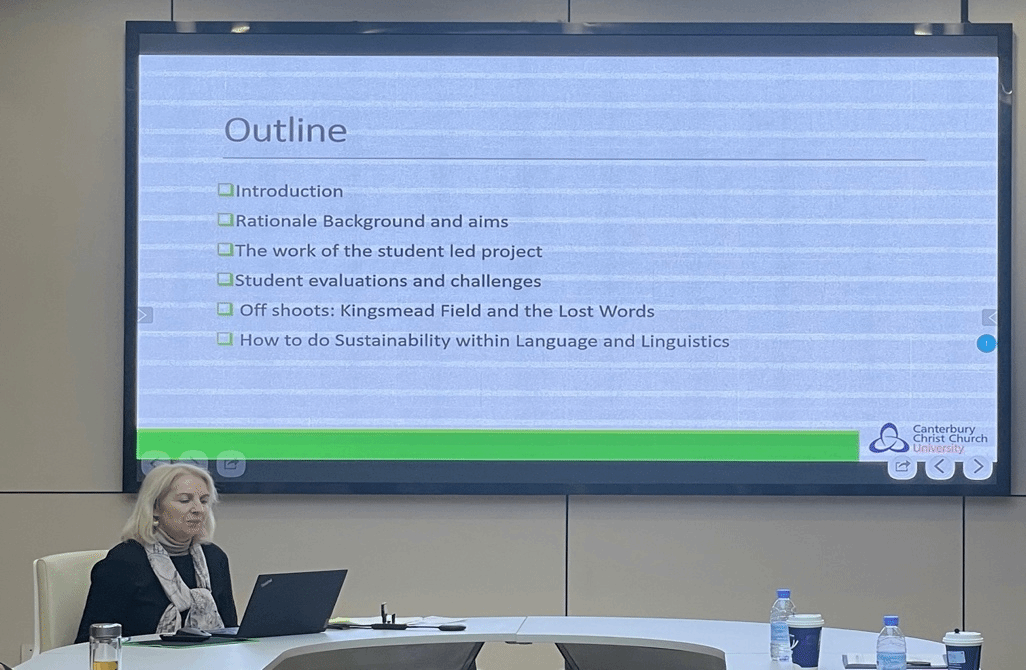 Antonia Linehan-Fox副教授为坎特伯雷大学语言中心课程负责人。她的研究和教学重点关注学生参与、可持续发展以及英语语言历史。在此次报告会上,她以“The Roots Project: An Exploration of a Student Led Sustainability Project”为主题,向与会师生分享其授课的经验与成果,为研究生阶段的外语专业教育改革带来了别样启发。