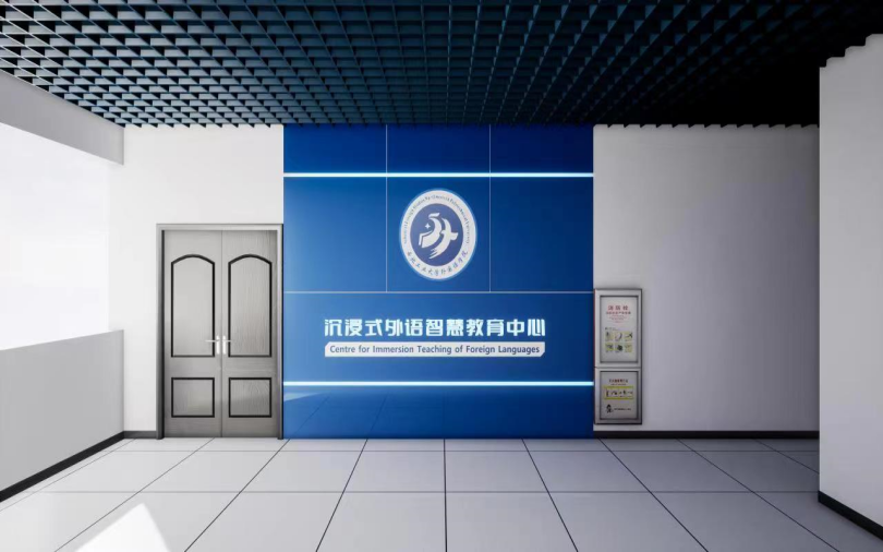 沉浸式外语智慧教育中心面向全校师生开放,现有语言实验室11间,其中包括翻译实训室、同声传译实验室、虚拟仿真实验室、智慧移动实验室等特色实验室。立足新文科背景,整体框架以平台为核心载体,以大数据技术、人工智能技术等为依托,打造校本特色的个性化、智能化外语实验室,为学生营造深度沉浸式的学习环境,集教、学、评、研于一体,线上与线下相结合,提高教师的教学和科研效率、学生自主学习能力和听、说、读、写全方位的语言实践能力,实现信息技术与外语教育的深度融合。