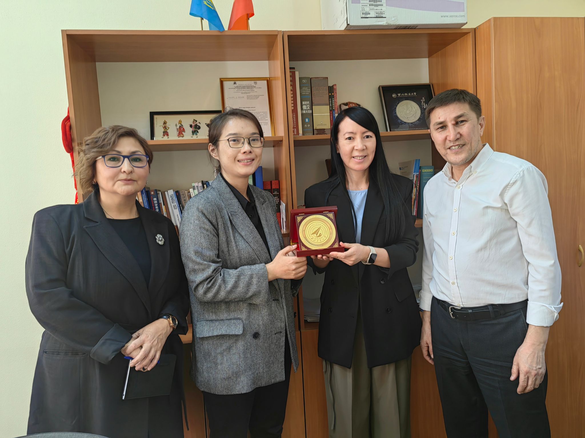 访问哈萨克斯坦阿布莱汗国际关系与外国语大学期间,代表团与该校东方学系系主任卡伽兹巴耶娃·艾里米拉·玛拉多夫娜、孔子学院外方院长卡利别库雷·托尔金等进行了亲切会谈。东方学系系主任卡伽兹巴耶娃·艾里米拉·玛拉多夫娜介绍了该校及东方学院基本情况及目前与中国相关高校开展合作交流和学生联合培养情况。她表示,希望尽快签署合作协议,开启两校合作篇章。孙瑜表示两院合作前景广阔,期待在学生联合培养、师资交换、国别研究等方面加强合作交流。此外,两院还就国际学术论文联合发表、科研合作项目申报事项等进行了细致研讨和协商,以促进两校间的资源共享,加强教育及研究交流,为师生提供更广阔的国际视野和学习机会。