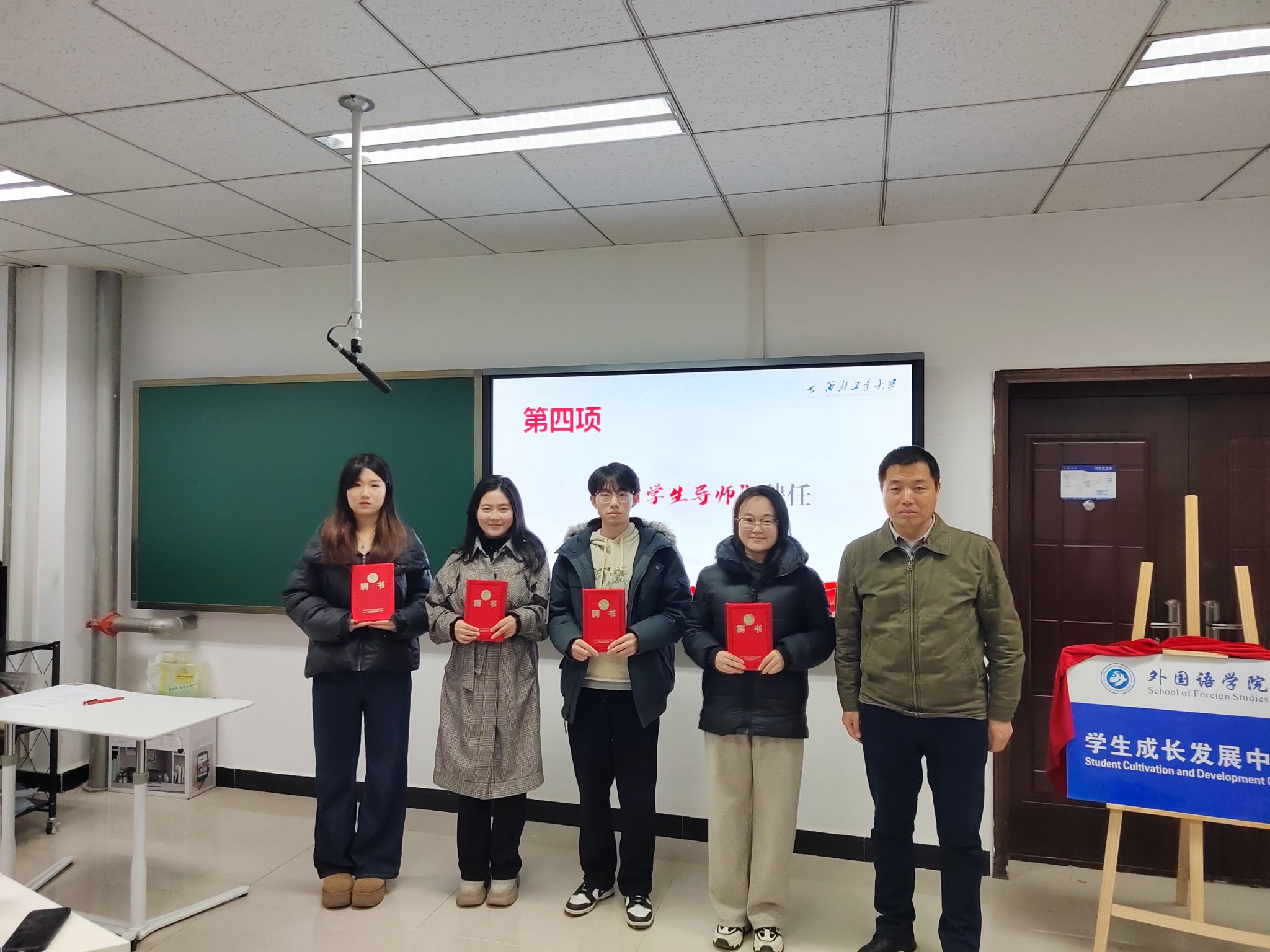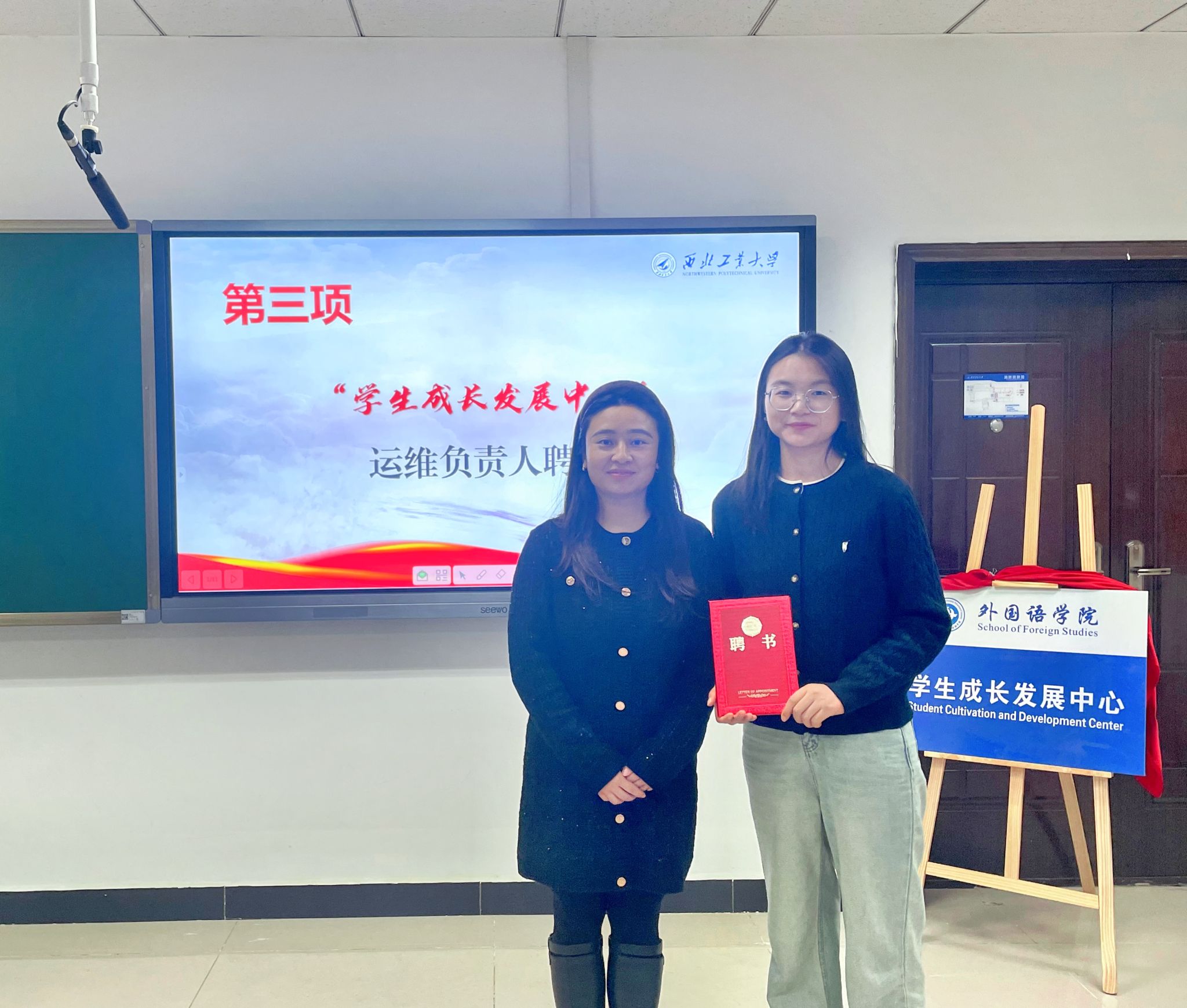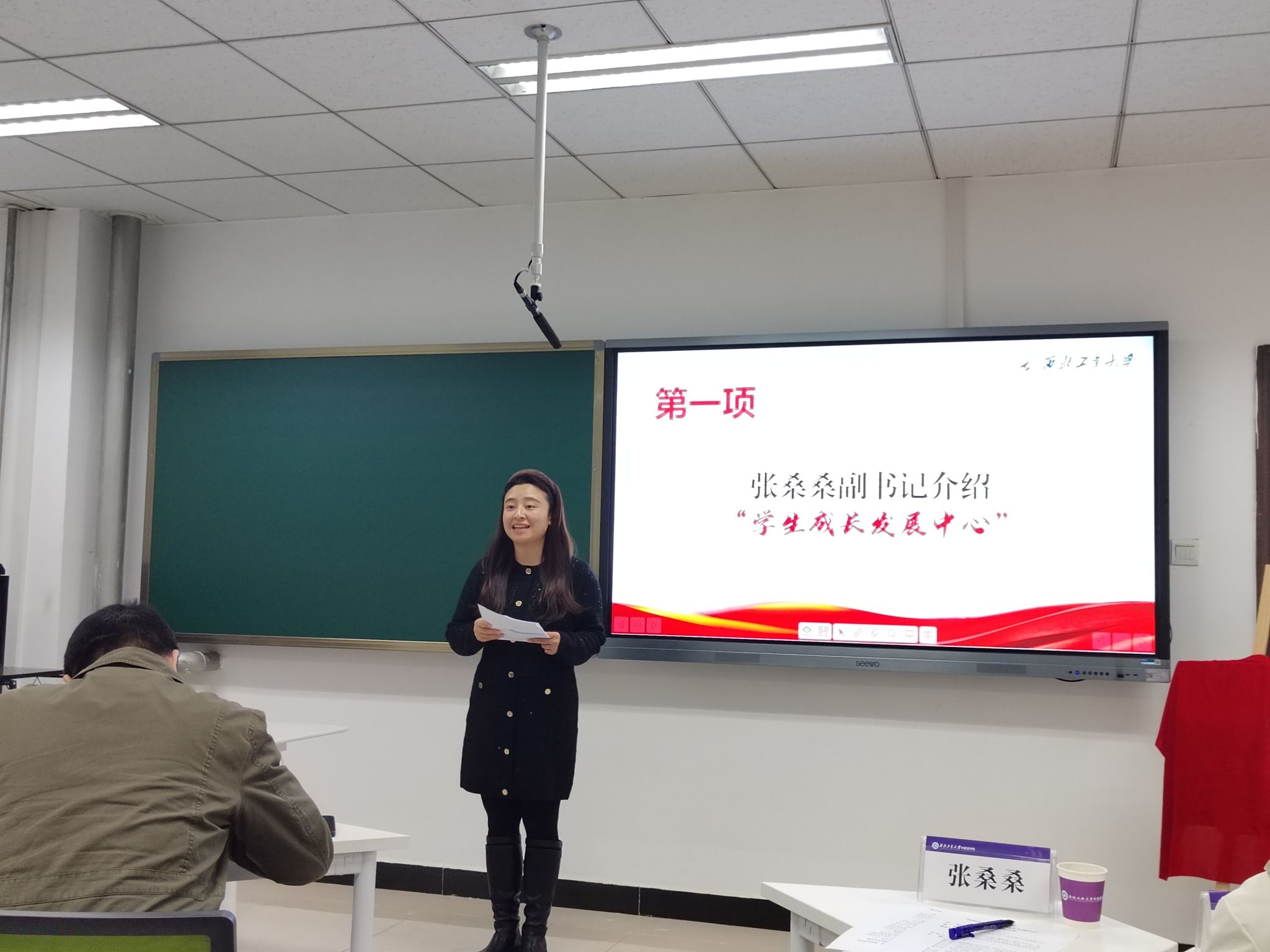 在语音实验中心202举行了“学生成长发展中心”启动仪式(以下简称“中心”)。学院党委书记王高祖、副书记张桑桑、班主任代表崔孝彬、学工主管许涛涛、辅导员吴蕊霖及各年级30余名学生骨干和相关获奖代表等参加了会议。会议由辅导员赵青主持。