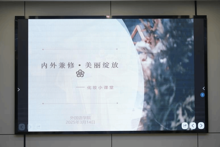 于学院楼204会议室举办“内外兼修·美丽绽放”系列活动,特邀专业化妆师吉俊莹,以“化妆”为主题进行培训。活动共吸引近30名学生参加。