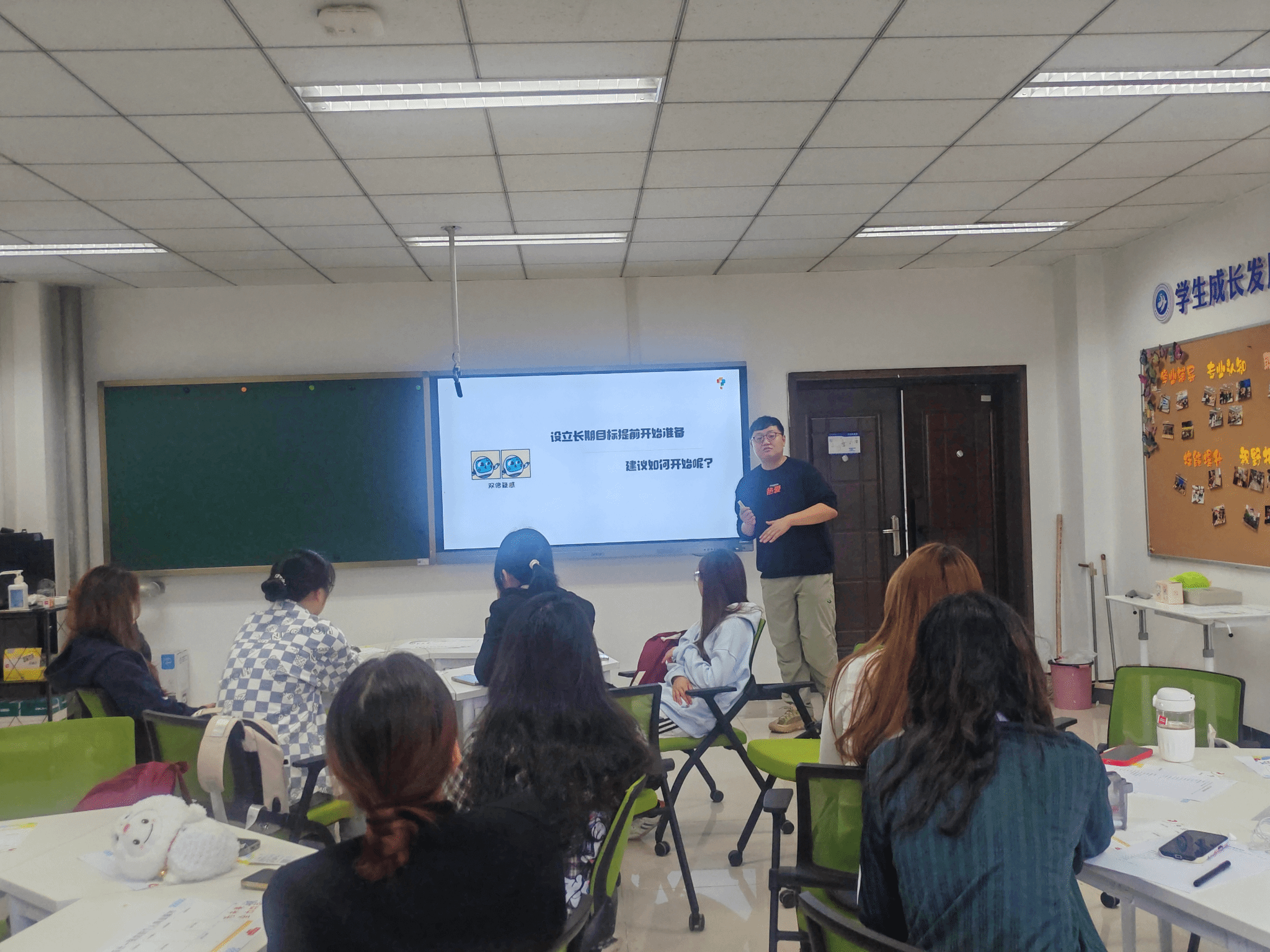 在学生成长发展中心面向本科一、二年级开展了“职业启航”系列活动——职业兴趣探索赋能营。三位资深人力资源规划师陈醉、刘佳琪、周家瀚受邀为同学们带来一场生动活泼的职业规划指导培训。培训由辅导员赵青主持。