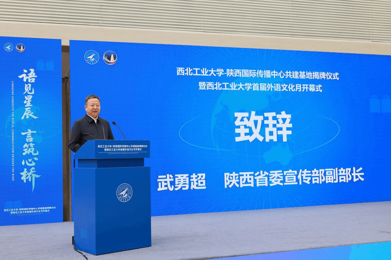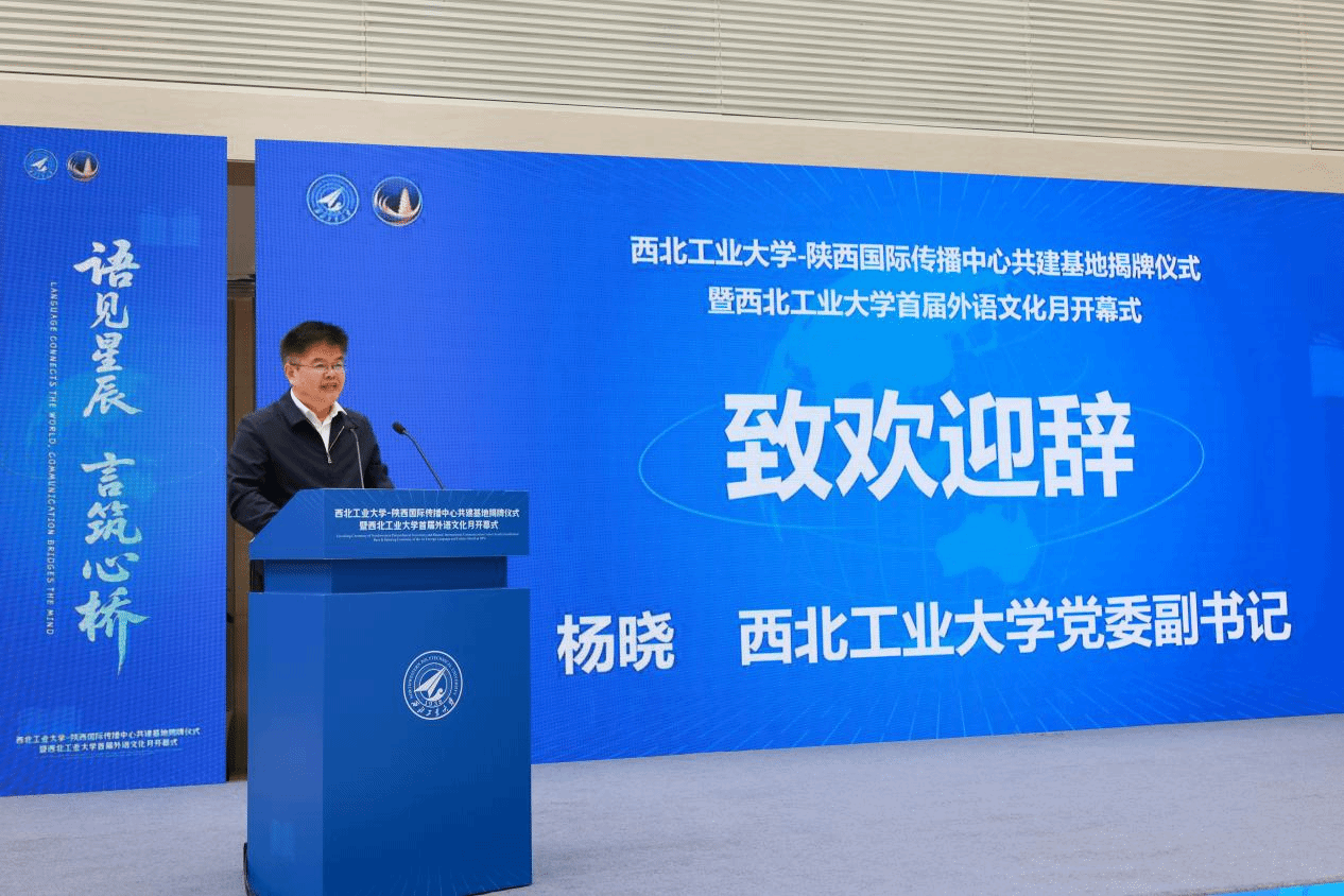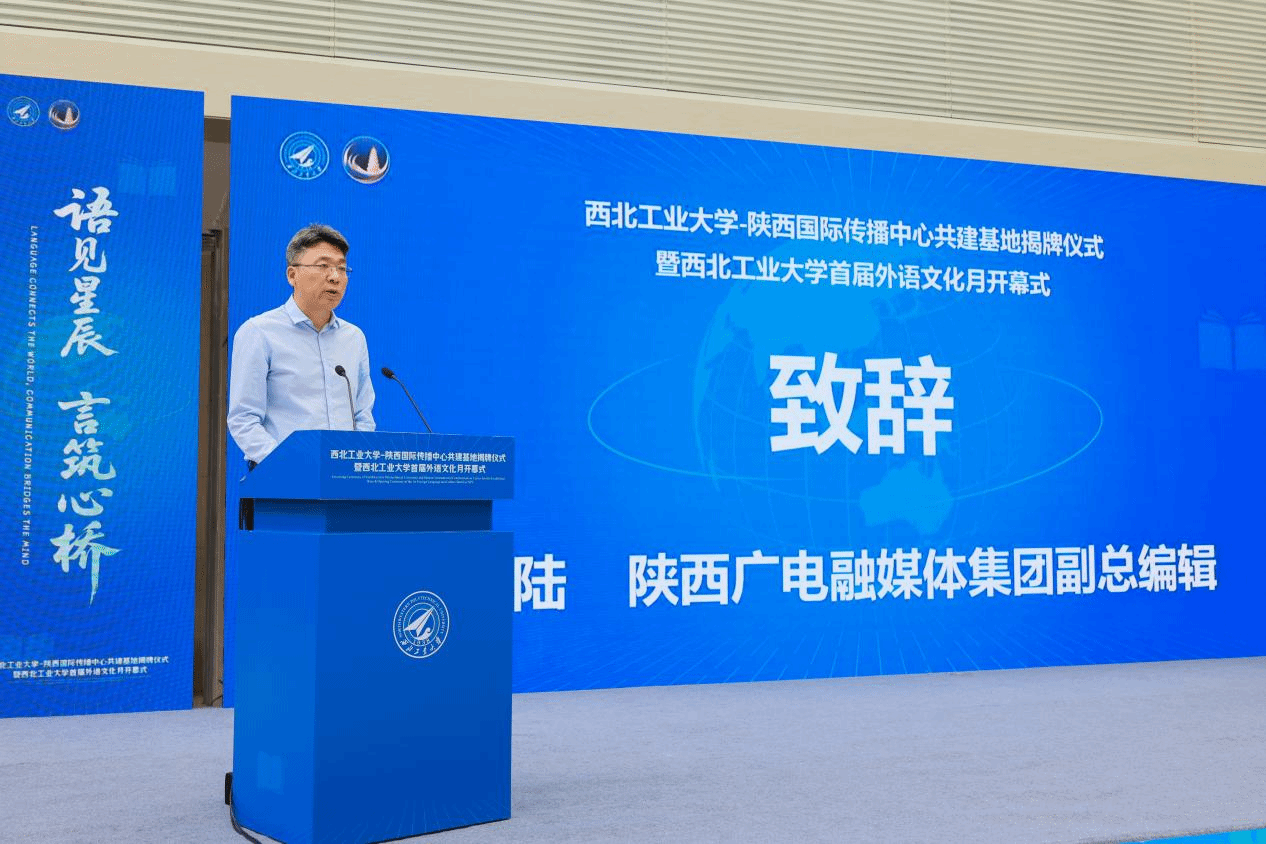 致欢迎辞,他向始终关注并大力支持学校发展的陕西省委宣传部、陕西广电融媒体集团等单位致以诚挚谢意,对学校与陕西国际传播中心的共建合作寄予深切期望,同时也对科技・文化国际传播研究中心的建设提出殷切愿景:一是锚定战略定位,打造传播高地;二是筑牢特色根基,提升传播效能;三是深化协同育人,培育优秀人才;四是完善体制机制,加强传播能力建设。