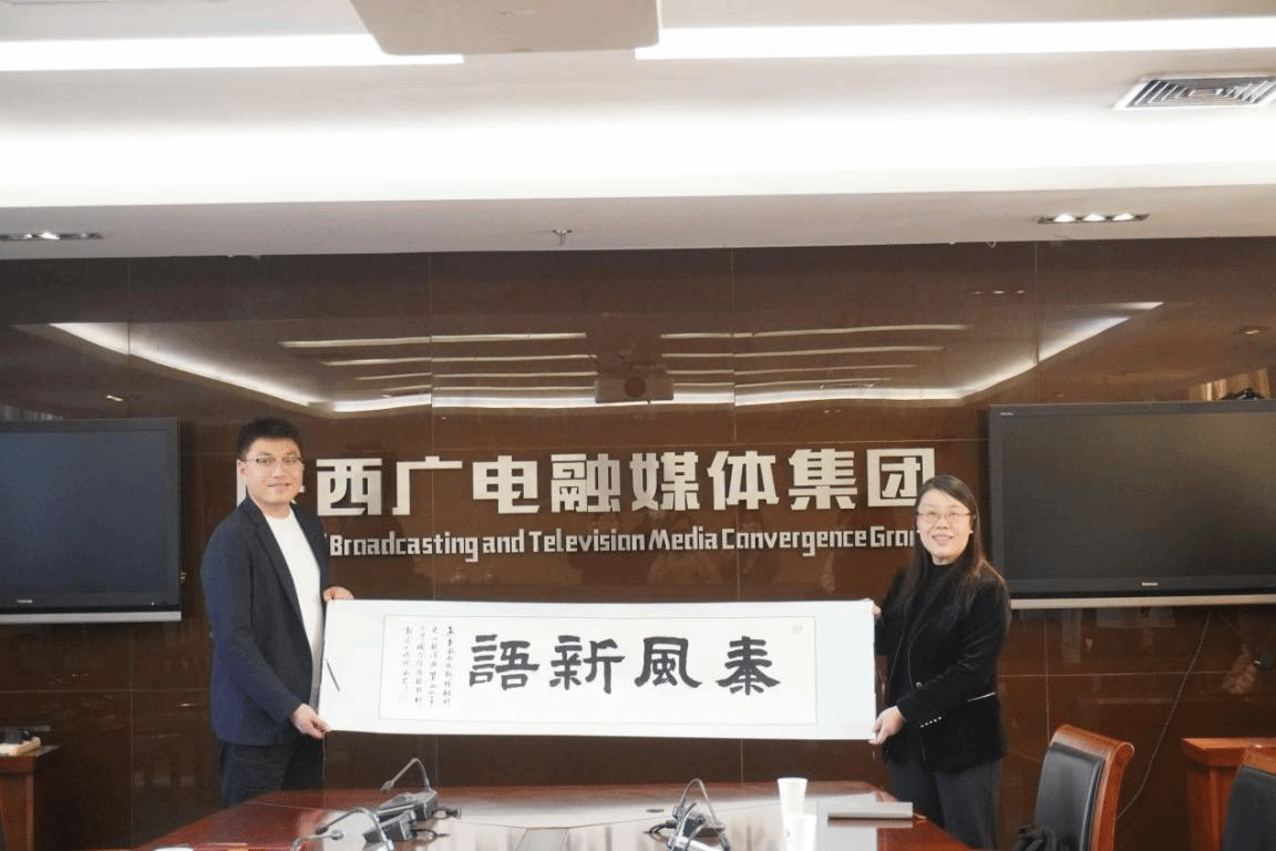 最后,孙瑜与范文共同打开“秦风新语”卷轴,标志着双方在校企协同育人、传播陕西文化、讲好中国故事方面正式拉开帷幕。“秦风新语”书法作品由巴卡漫画