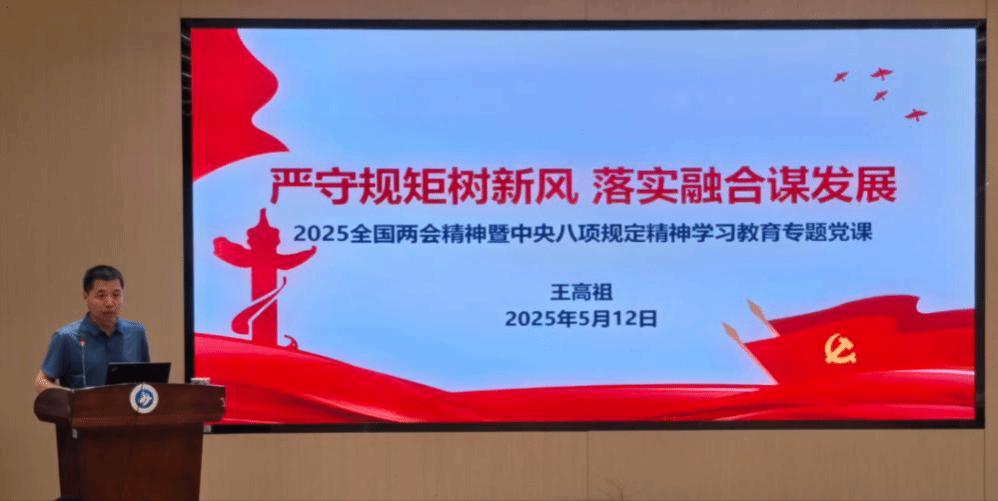 4月27日,巴卡漫画 开展深入贯彻中央八项规定精神学习教育专题党课,党委书记王高祖以《严守规矩树新风 落实融合谋发展》为题,为学院领导班子、支部书记、支委讲授专题党课。