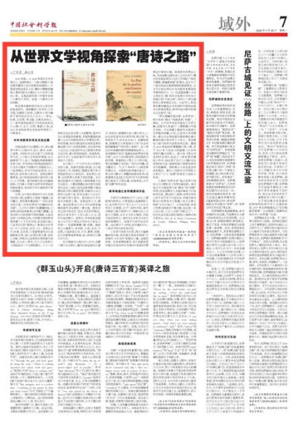 2022年7月25日,《中国社会科学报》刊发了第一作者为巴卡漫画 2021级硕士研究生丁雪莹的文章“从世界文学视角探索‘唐诗之路’”。该研究从诺贝尔文学奖得主、法国作家勒克莱齐奥与北京大学教授董强合著的《唐诗之路》出发,探索世界文学背景下的唐诗,以跨文化书写与对话视角对比分析中法作家的共同诗歌主题——酒、女性、自然,以及中西文化审美差异等方面,旨在推动中国古典诗歌走向世界,更好地传播中国文化。...
